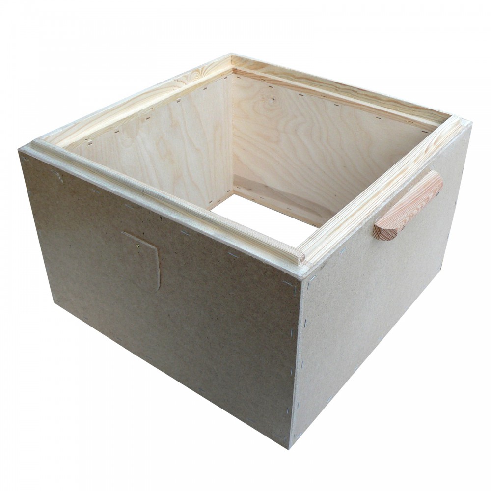 Korpus wielkopolski wykonany z płyty, ocieplany styropianem, wewnątrz sklejka wodoodporna - rama drewniana. Grubość ścianki 35mm